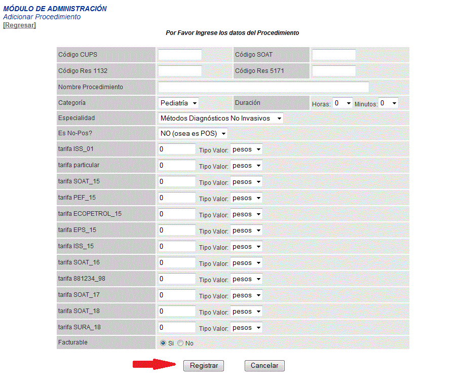 | 4. Finalmente llena la plantilla con los campos requeridos, da click en el botón Registrar y Aceptar: |